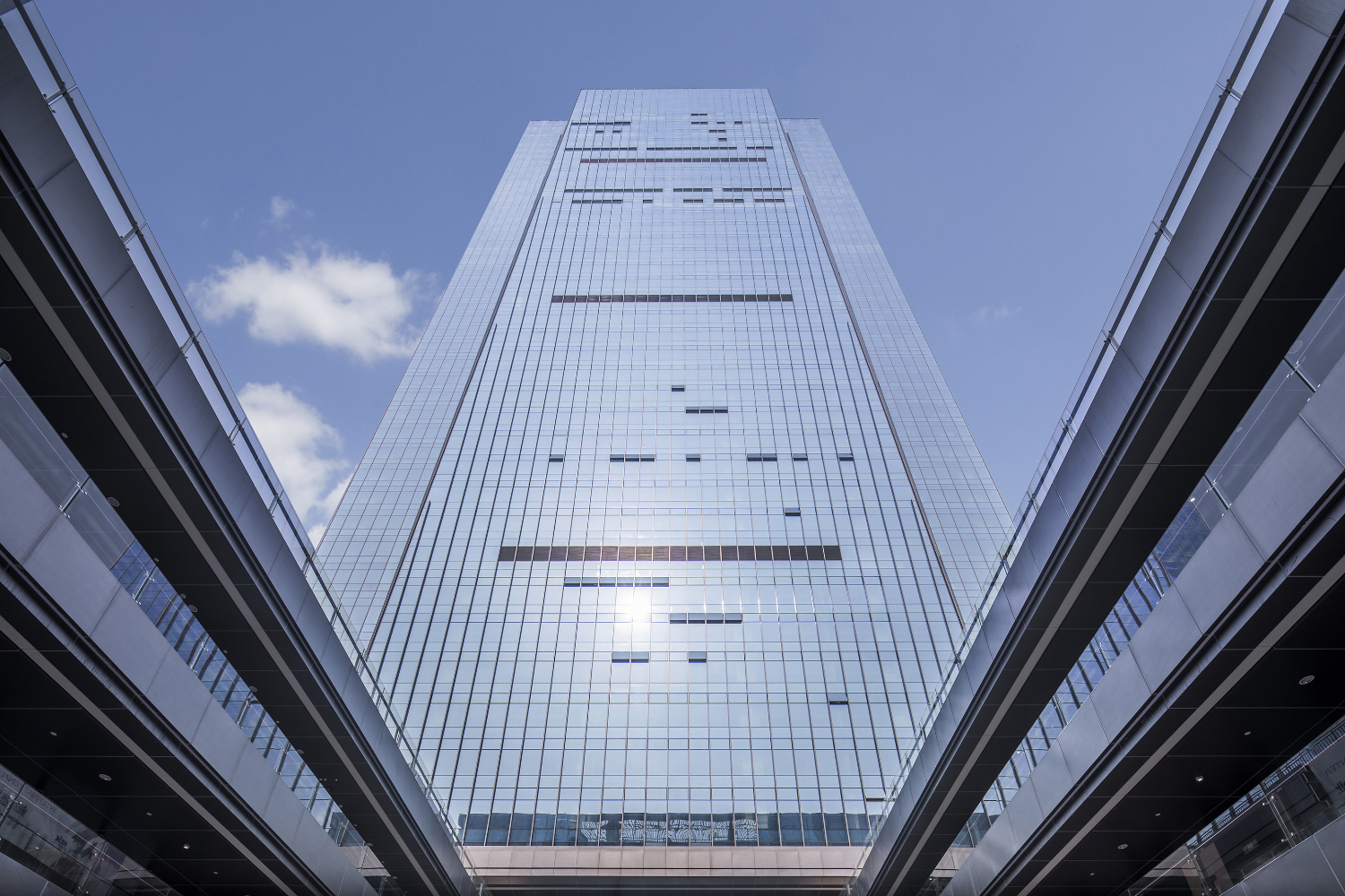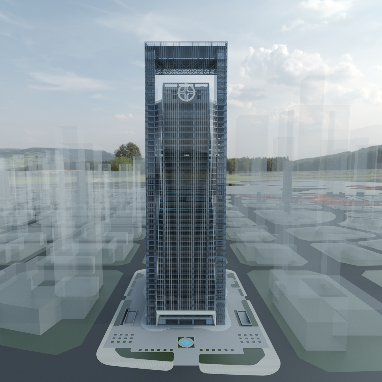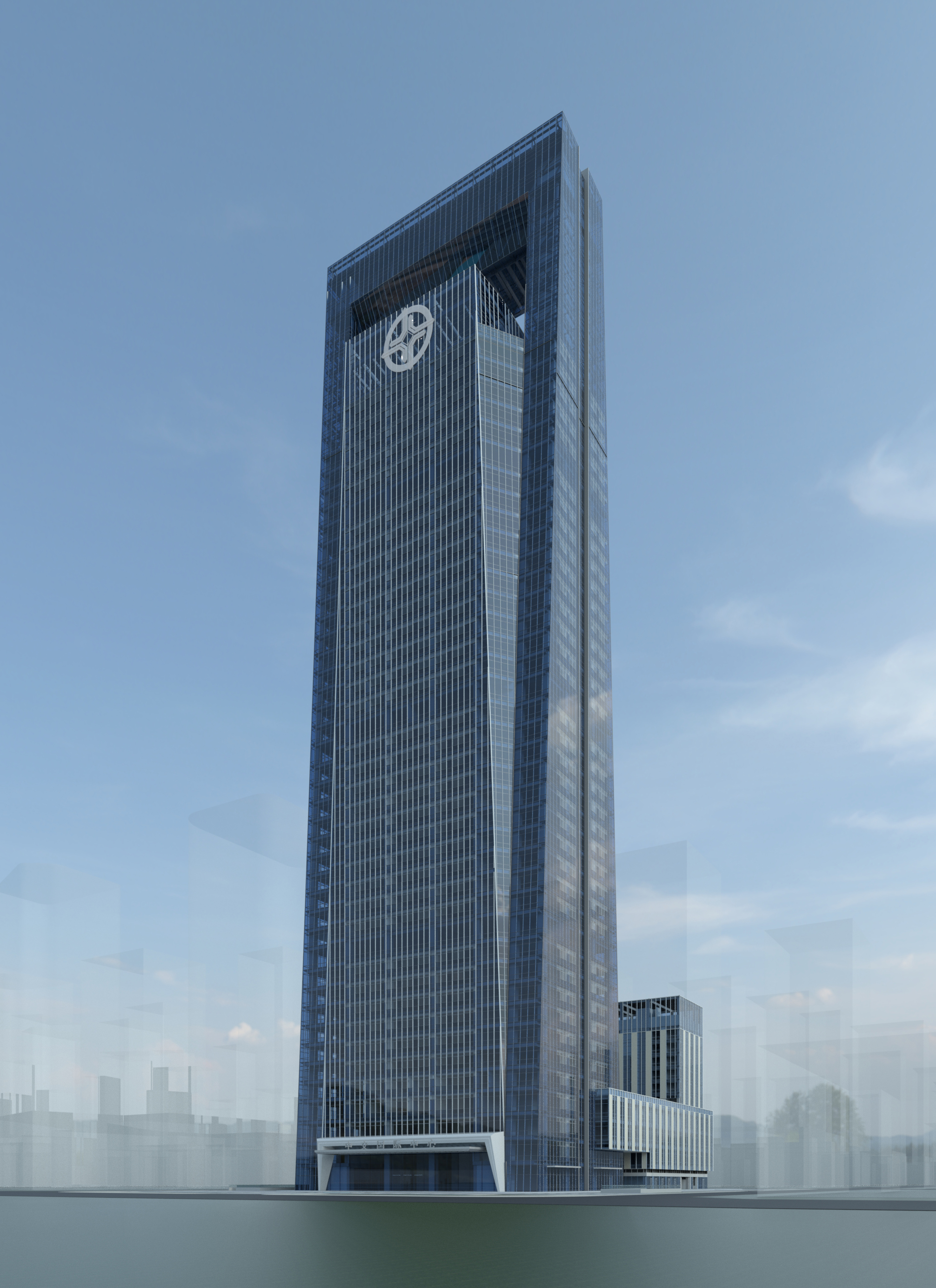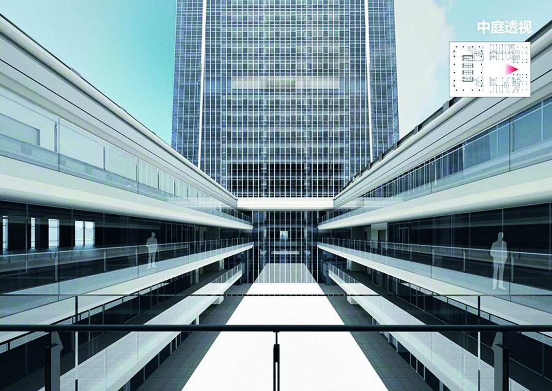 建筑頂部門架式觀光廊橋是項目的點睛之筆。建筑師通過對業主企業文化的理解和概括,抽象出最具代表性的建筑形體。門架造型隱喻“中交之門、天府之門的”精神內涵,莊嚴的建筑形態體現“行天下、天下行”的國際化大企業氣質,傳達了四通八達的企業文化。