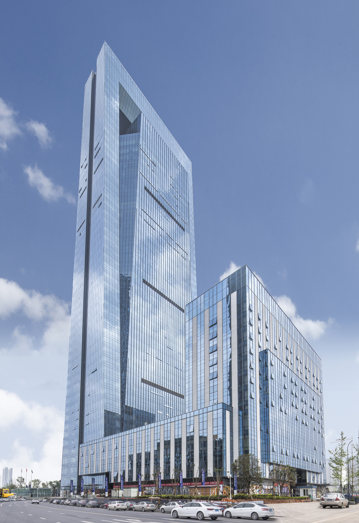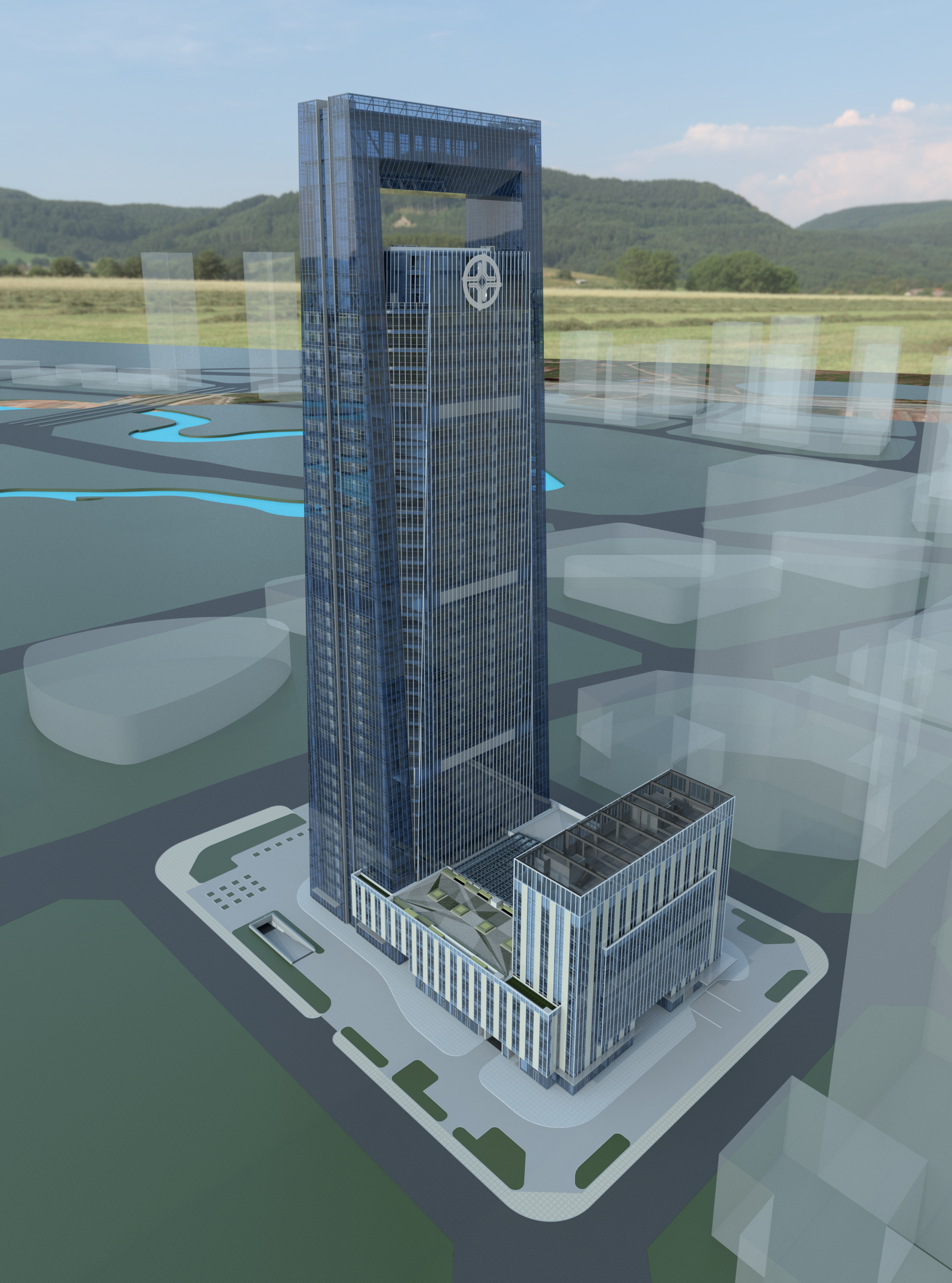 中交國際中心由一棟220M的超高層甲級辦公樓,一棟144個房間的商務精品酒店,4層定制型商業商務配套等建筑組成集合式綜合體。項目位于成都天府新區秦皇寺中央商務區,緊鄰天府公園,占據區域最佳自然環境。高密度的城市中心,便利的交通,一線景觀資源,最佳城市展示面。諸多條件決定了項目具備了城市地標的潛力。