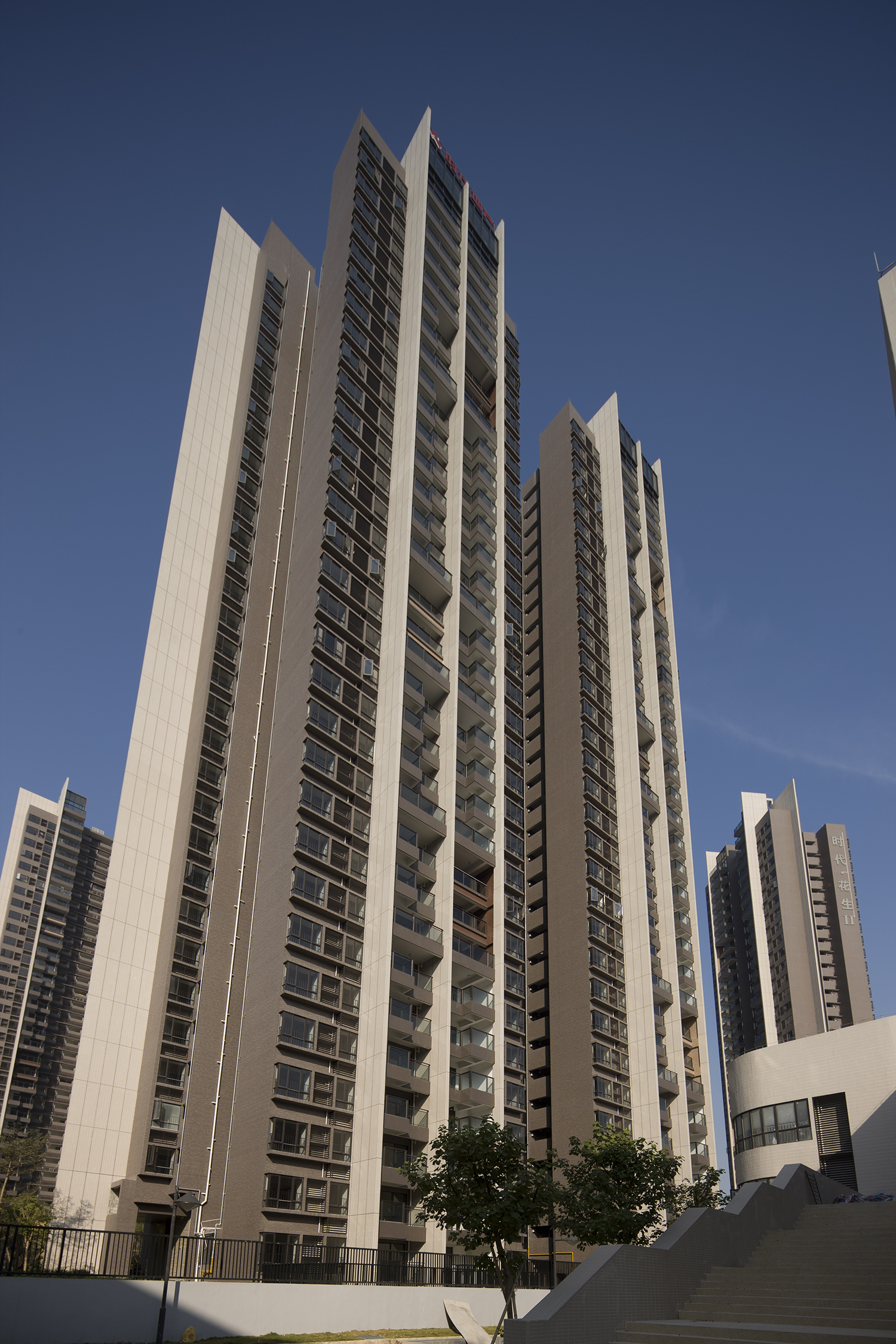 項目是業主繼時代“糖果”系列后再次推出的特色鮮明的高品質居住社區。時代花生是廣州天河北最大的體育運動配套社區。通過規劃圍合出內部大型的小區綠化園林,并于園林中配置了大量的生活運動、休閑設施,再配以幼兒園、沿街商業等公建,意在為使用者創造一個配套齊全、環境舒適、適于居住的高檔住宅小區,視線良好,可望及白云山、鳳凰山。設計上采用翼緣墻引導視線,創造了一個具有連續過渡感的室內外空間;露臺是此建筑平立面設計的一個重要因素:露臺的巧妙設置豐富建筑外立面的同時創造了一個放松的室內及室外互相聯系的生活方式,凸窗部分的設計創造了一個懸挑的空間,供住戶眺望戶外風景。